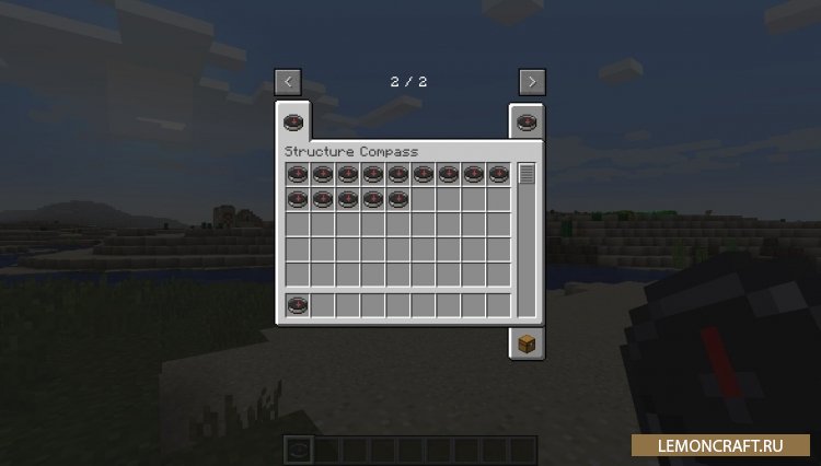 Мод на компас для структур Structure Compass добавит в игру специальные компасы, которые укажут вам путь до караблекрушений, океанов, заброшенных фортов, пирамид, энд городов, деревень и других структур. Теперь вам не нужно блуждать по всему миру в поисках, достаточно посмотреть на компас и он укажет вам точный путь.